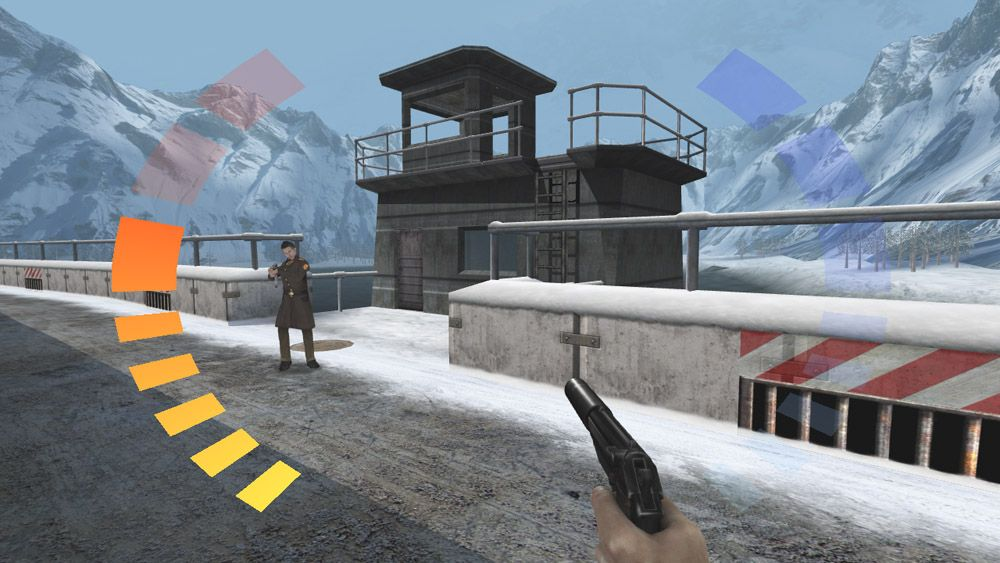 L’arsenal varié a aussi joué un rôle dans le succès du jeu : pistolet silencieux, pistolets mitrailleurs, fusils d’assaut, fusils à pompe et des armes plus exotiques comme le fusil de précision, les couteaux de lancer, lance-roquettes, lance-grenades, mines de proximités, etc… et même le fusil laser de Moonraker. GoldenEye 007 donnait aussi la possibilité d’avoir une arme dans chaque main (notamment via un glitch) et était aussi compatible avec le Rumble Pak : un accessoire de Nintendo 64 qui permettait d’avoir des vibrations dans la manette et poussait davantage le sentiment de réalisme.