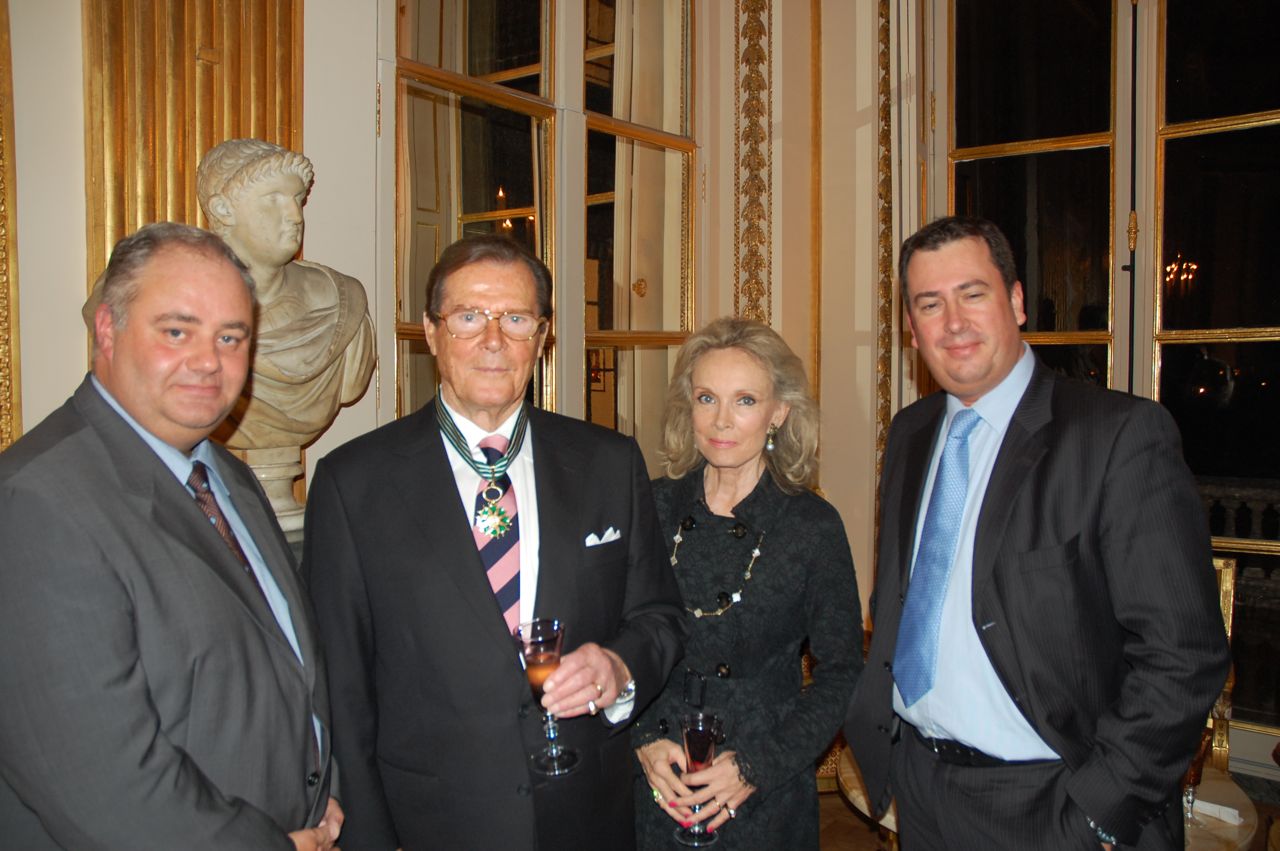 Première étape de son périple français. Mardi 28 Octobre, sous les ors de la République, Roger Moore a été élevé au rang de Commandeur dans l’Ordre des Arts et des Lettres par Christine Albanel, Ministre de la Culture. Après la cérémonie, Roger Moore a reçu ses invités dans un salon particulier du Ministère. Ainsi, il a pu retrouver Blanche Ravalec (Dolly dans Moonraker) et se remémorer quelques bons souvenirs autour d’une coupe de champagne. A l’issue de cette semaine en France, Roger Moore poursuit sa tournée aux Etats-Unis, notamment à New-York, puis en Australie, en Nouvelle-Zélande, au Japon, en Scandinavie et en Irlande. Déjà un succès colossal en Grande-Bretagne, son roman est d’ores-et-déjà en cours de traduction dans huit pays. Beaucoup d’autres vont suivre… Bondien, isn’t it ?