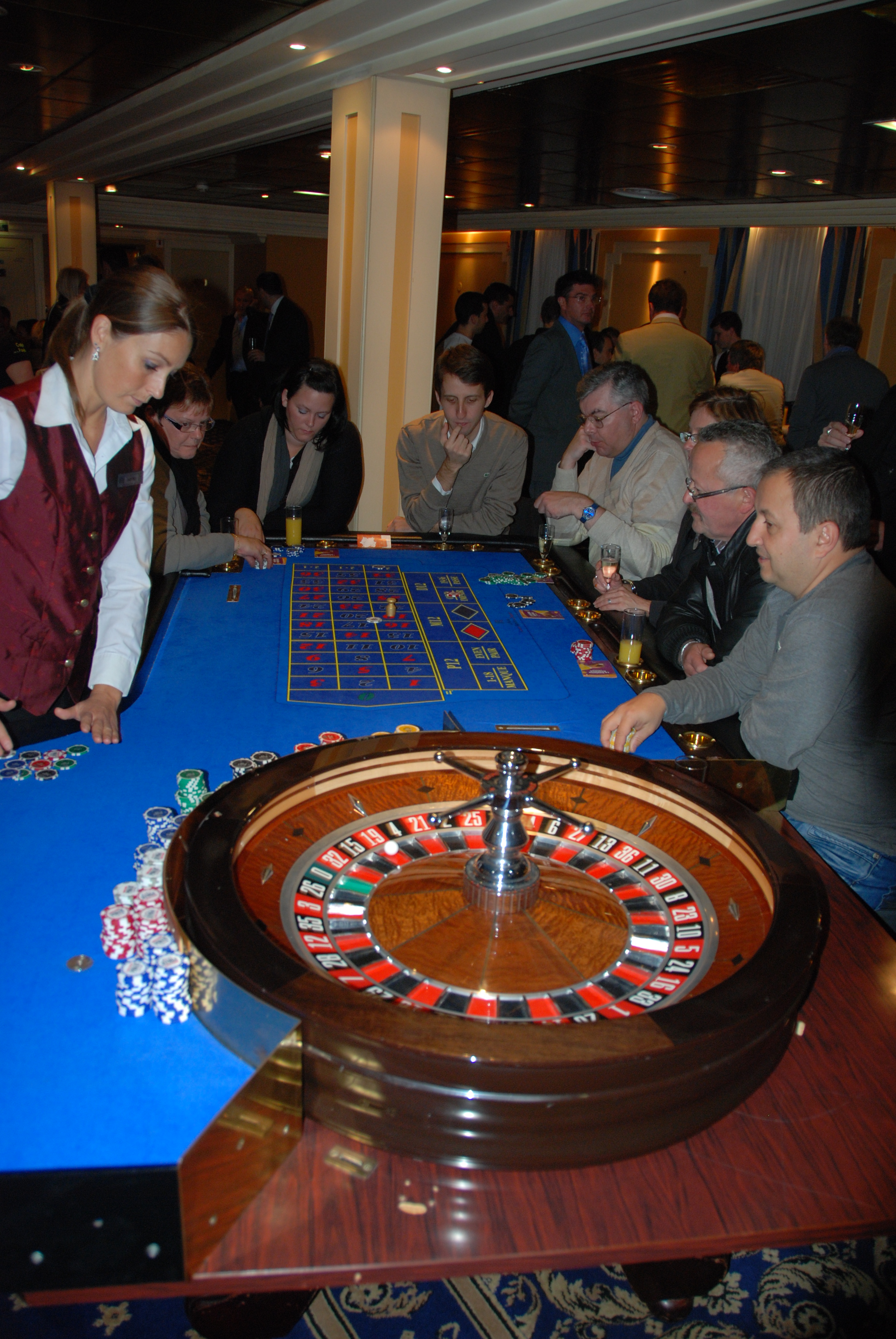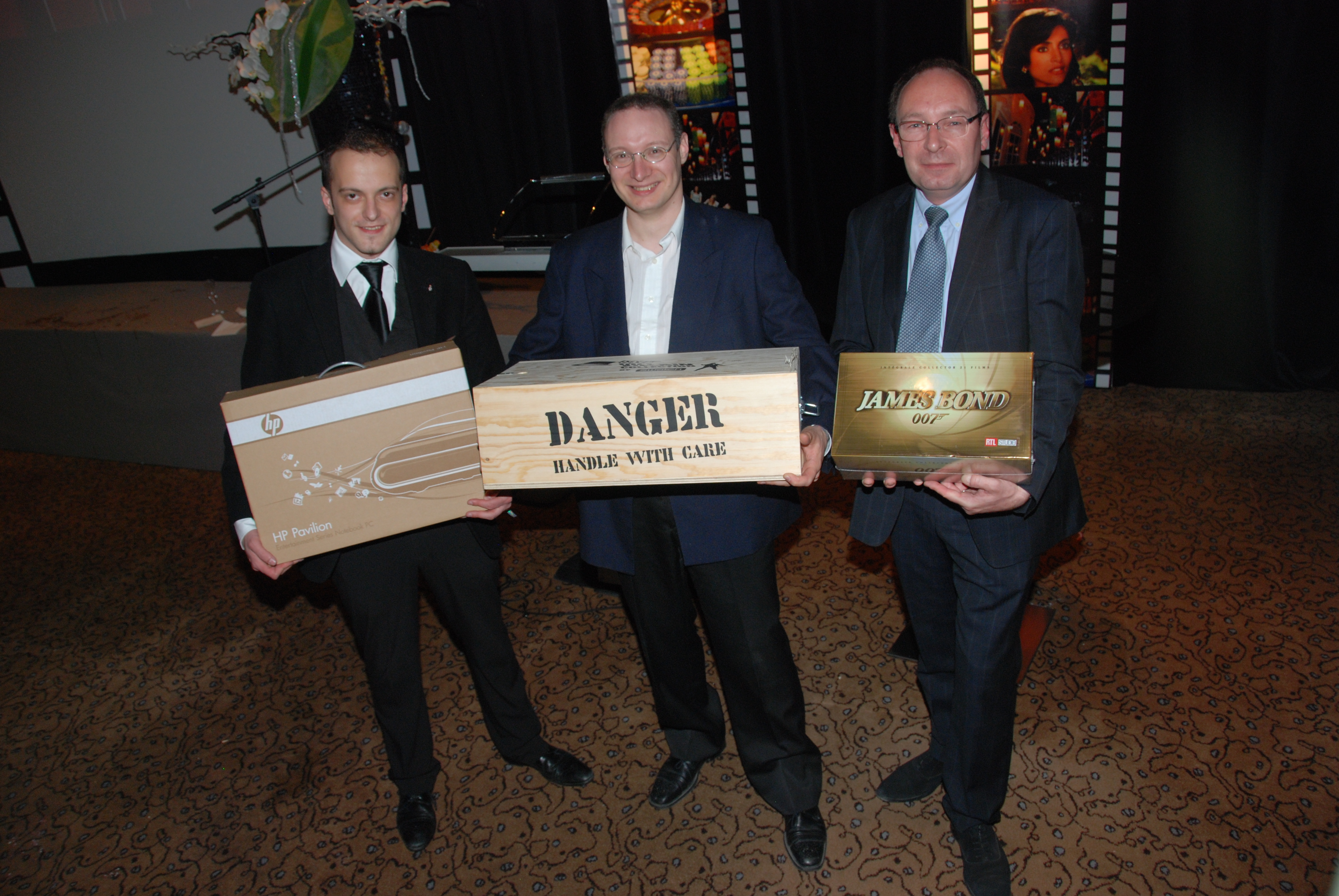 Un tournoi où les frais d’inscription seraient, après taxe payées à l’État, reversés intégralement à l’ONG qui oeuvre sur le continent africain, et qui, comme vous le savez, a furieusement besoin de mains tendues. Eon Productions contacté par Caterina donne rapidement son accord écrit pour que le gun logo et le nom « Casino Royale » soient utilisés. En dehors d’avoir mis tout ce petit monde en relation, notre mission est assez simple et précise. Offrir la possibilité d’exposer une Aston Martin DBS dans le hall du casino, prêter des affiches du film pour la décoration intérieure et préparer un quizz sur James Bond pour le concours organisé dans la soirée avec de nombreux lots à la clé et fournir un photographe. Et, cerise sur le gâteau : être disponibles pour faire notre boulot de consultants bondiens ! Après plusieurs réunions et échanges en tous genres, la grande soirée a enfin lieu.