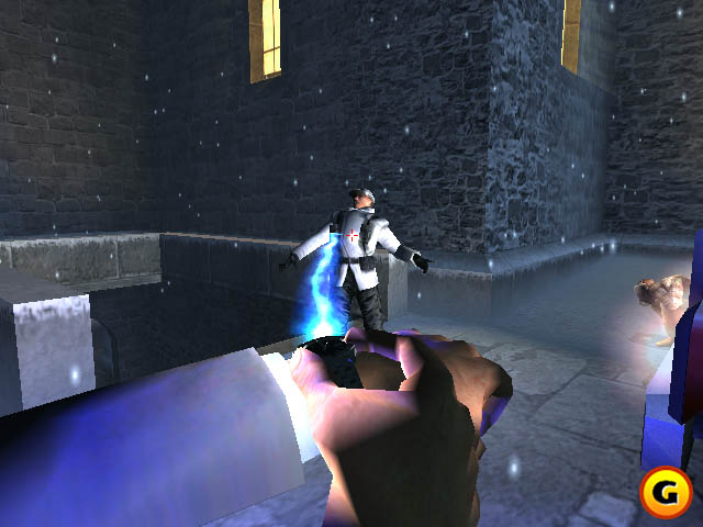 Vous retrouvez donc au château de Drake dans Un accueil glacial et second constat, vous ne tenez pas un PPK dans votre main mais un P99. Si la version console proposait un PPK et un P99, seul le P99 est présent dans cette version PC… mais au moins celui-ci ressemble à un vrai P99 ! Troisième chose que vous constatez, et que vous allez remarquer dans tout le jeu : bien que les objectifs de la mission soient les mêmes, le level design du niveau est différent de celui de la version console !